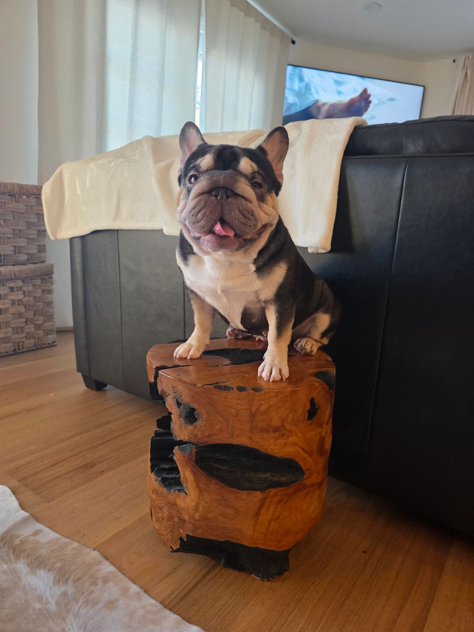 Amber is our stunning chocolate & tan big rope. She carries fluffy, pied, cream, and blue! She is 5 panels cleared!! Her temperament is truly one-of-a-kind—she’s friendly and gentle with everyone she meets. Her biggest quirk? She has a sweet tooth and isn’t shy about taking treats from strangers!