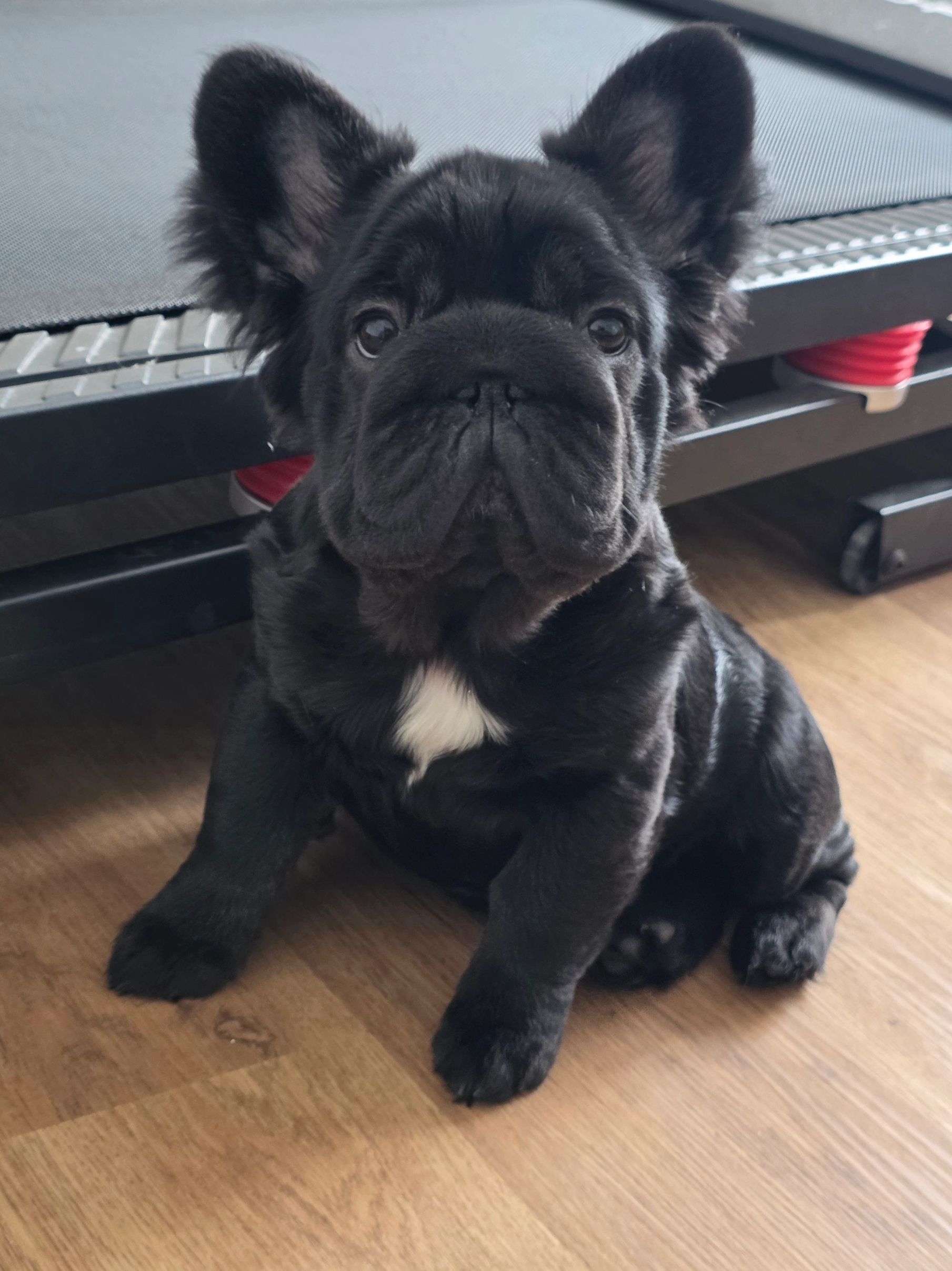 Grizz is a daughter of Amber and our first-generation L1/L4 Fluffy Frenchie. She is a Cocoa KB female carrying testable Chocolate and Blue, along with two copies of Tan Points (KB masks the A-locus). 6 Panels cleared!!!